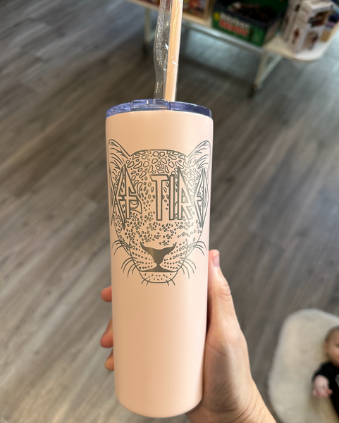 These cups are engraved (not a vinyl decal) and can be customized.